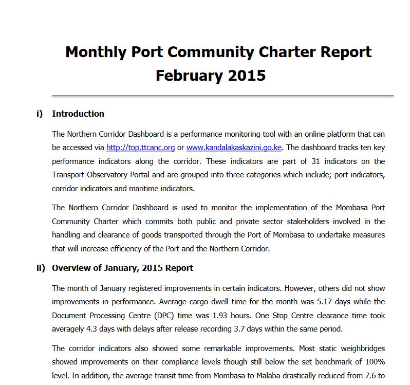 Quarterly Port Community Charter Performance Report for January - March 2015