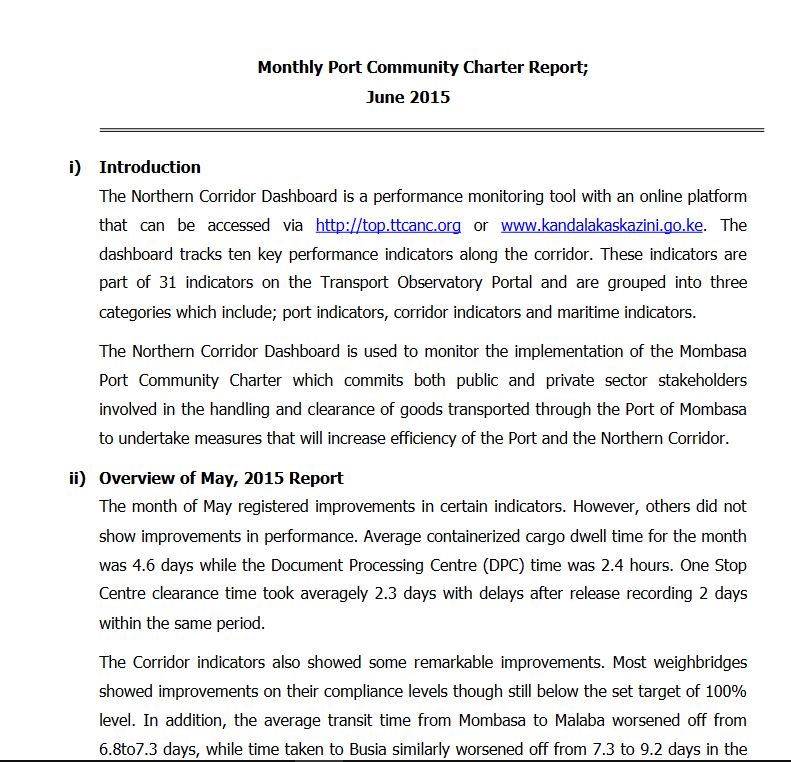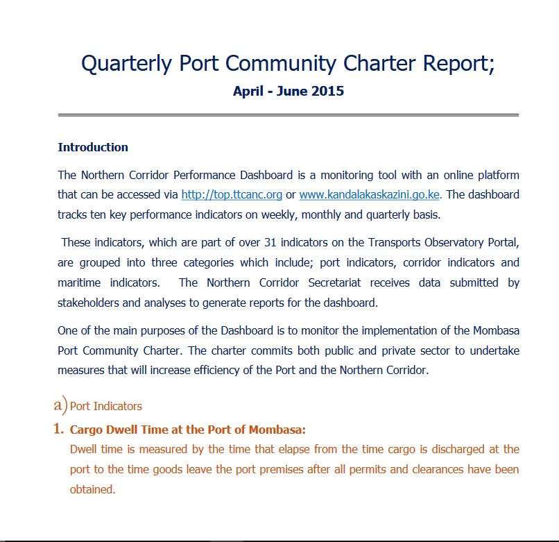 Quarterly Port Community Charter Performance Report for April - June 2015