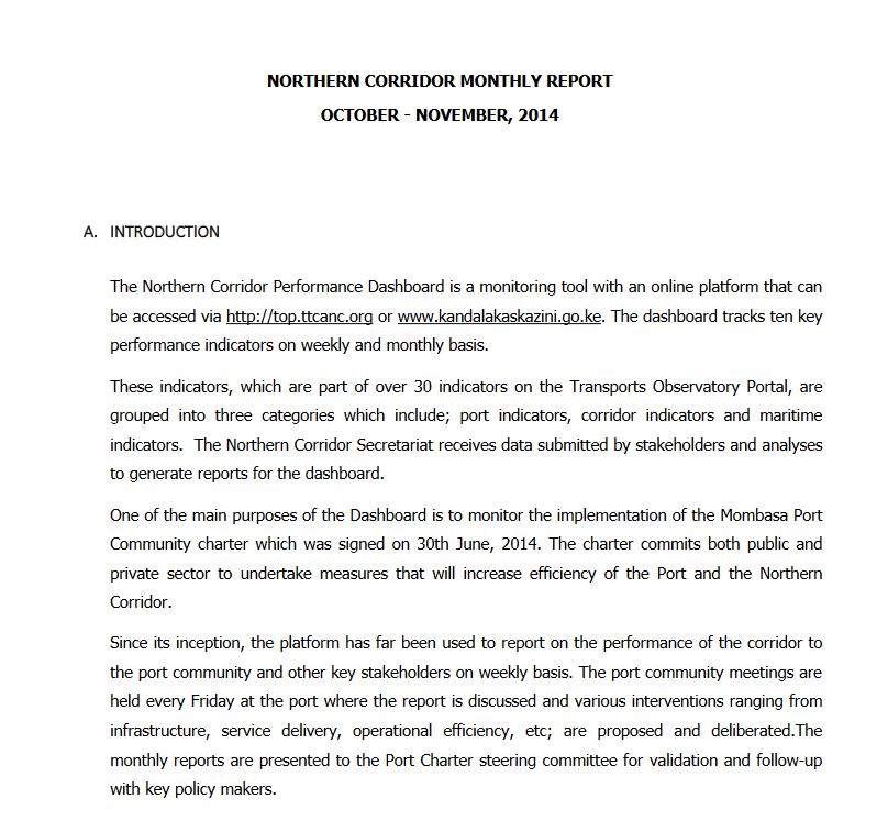 Monthly Northern Corridor Performance Report for October & November