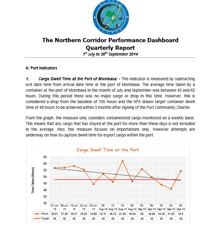 Northern Corridor Performance Dashboard 1st Quarter Report