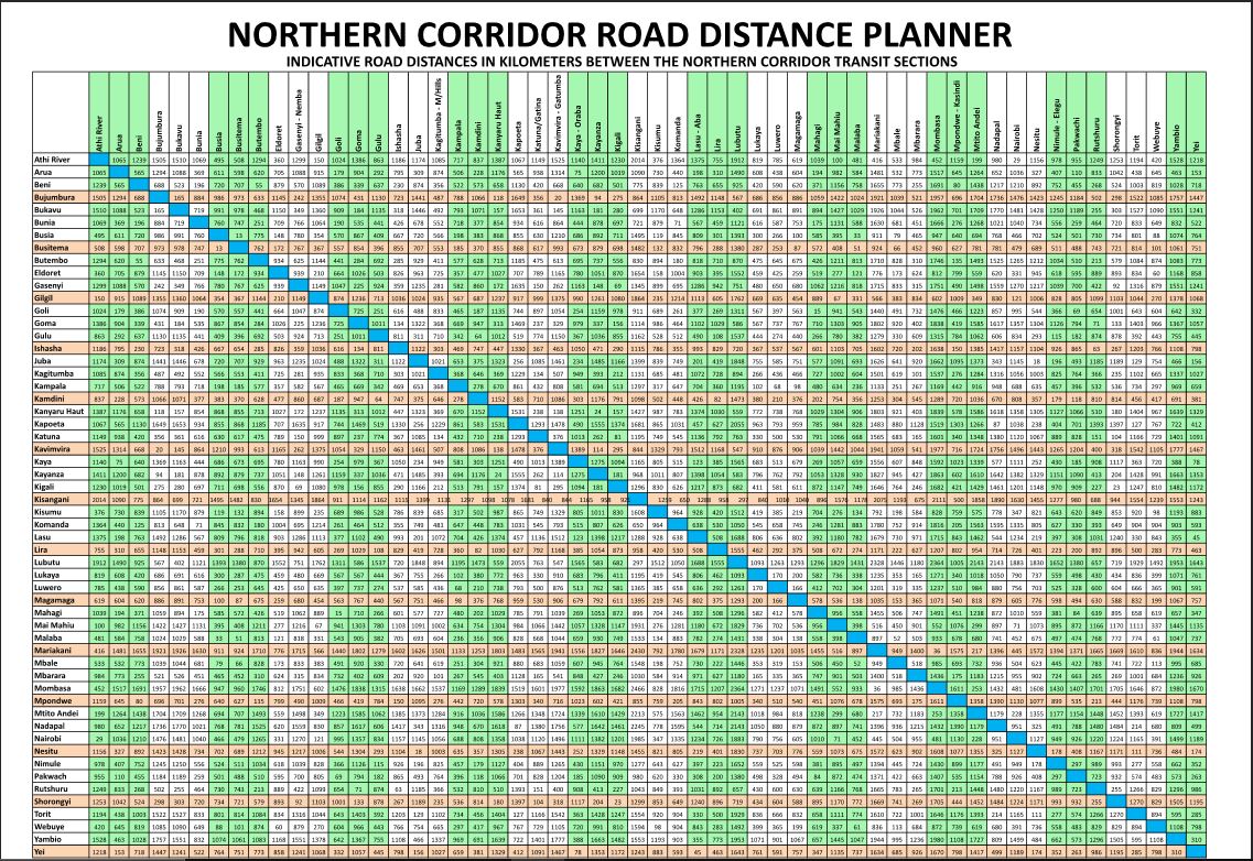 Northern Corridor Road Distance Planner And Transport Infrastructure Network