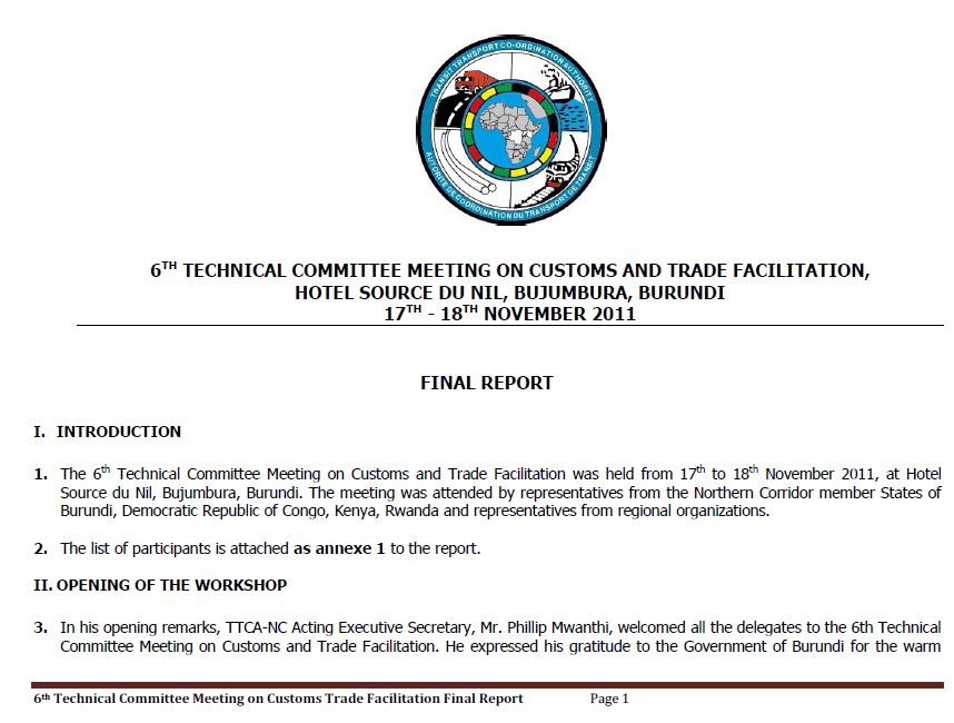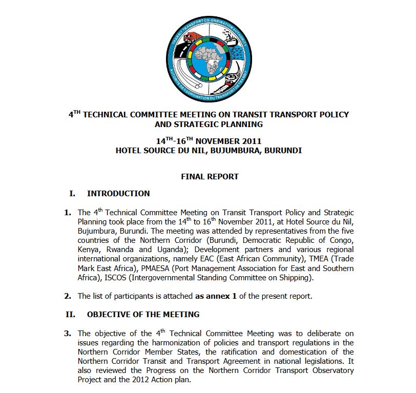 Survey of the Northern Corridor Transit Sections of Kisumu � Busia � Kampala � Mpondwe/Kasindi and Mbarara � Katuna/Gatuna