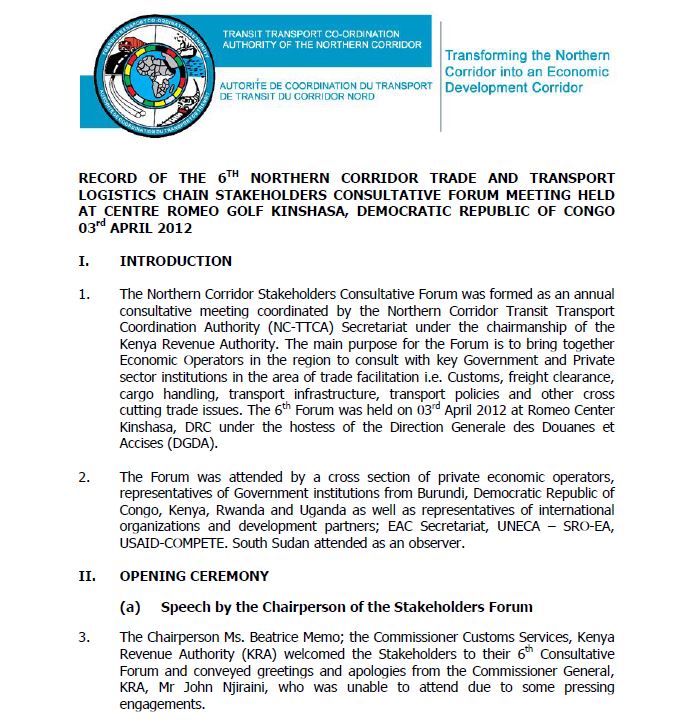 The 6th Northern Corridor Stakeholders Consultative Forum Meeting